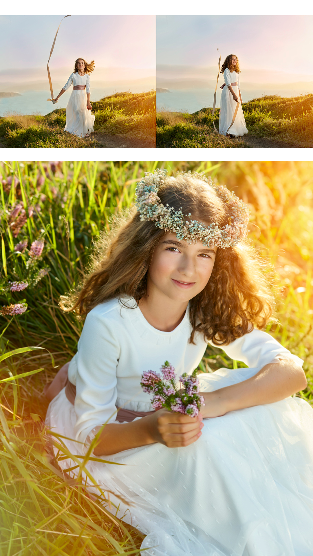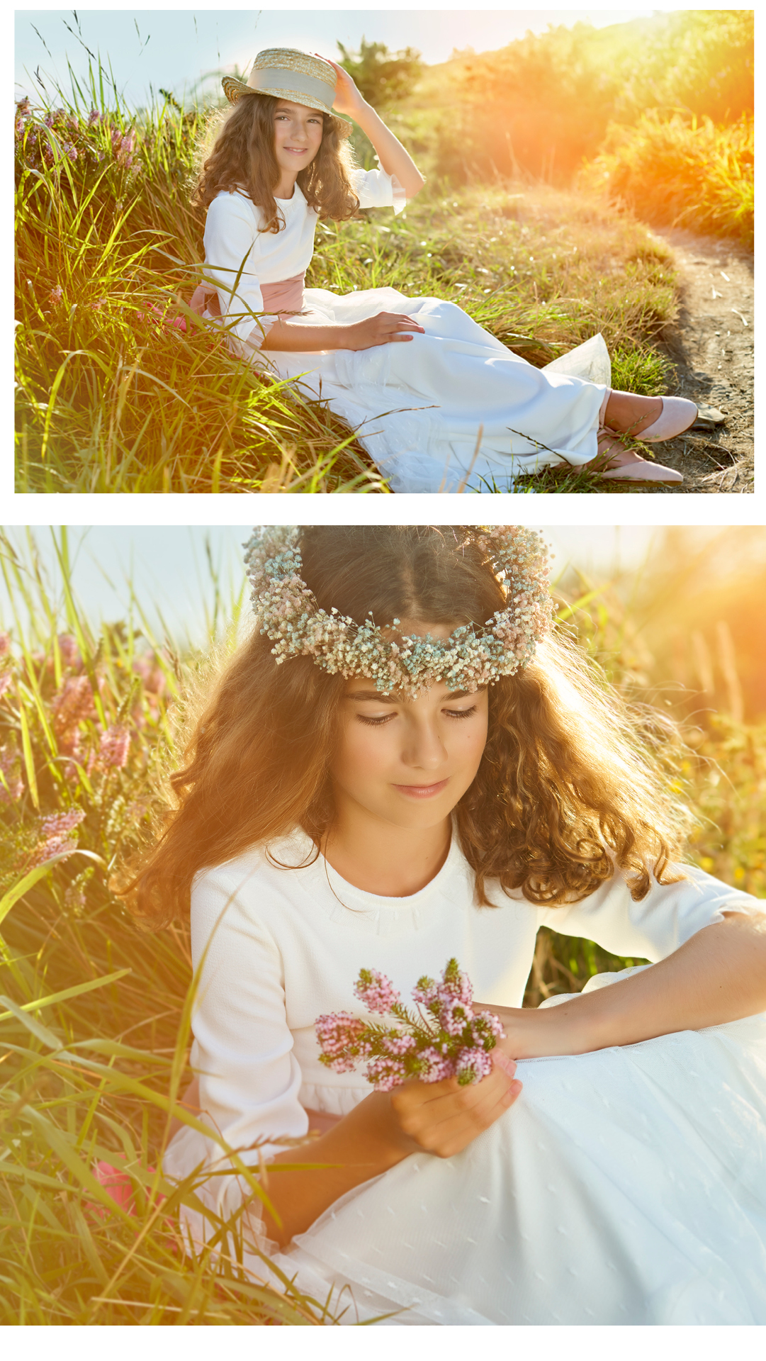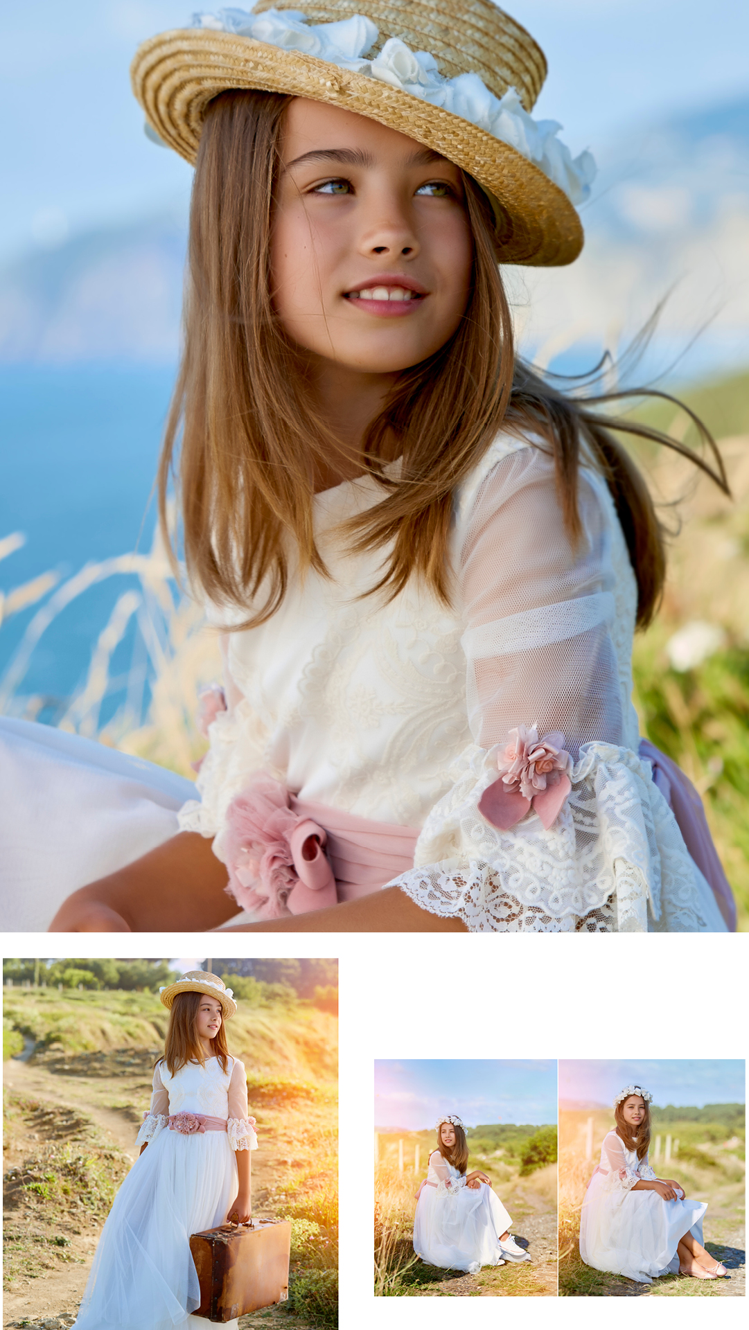 En los reportajes de comunión, mi objetivo es capturar la esencia de sus almitas . Me gusta que los niños sean ellos mismos, con decorados y complementos sencillos. Lo importante en mis fotografías son ellos, sus expresiones, sus risas, captar la esencia de cada niño; alegres, reservados, tímidos, dulces… etc ¡Son tan espontáneos y naturales que siempre salen imágenes únicas! En el estudio, también contamos con atrezzo divertido (sombreros, maletas, gafas…) que les encanta usar y que les ayudará a darle un toque único y muy divertido a sus fotos.