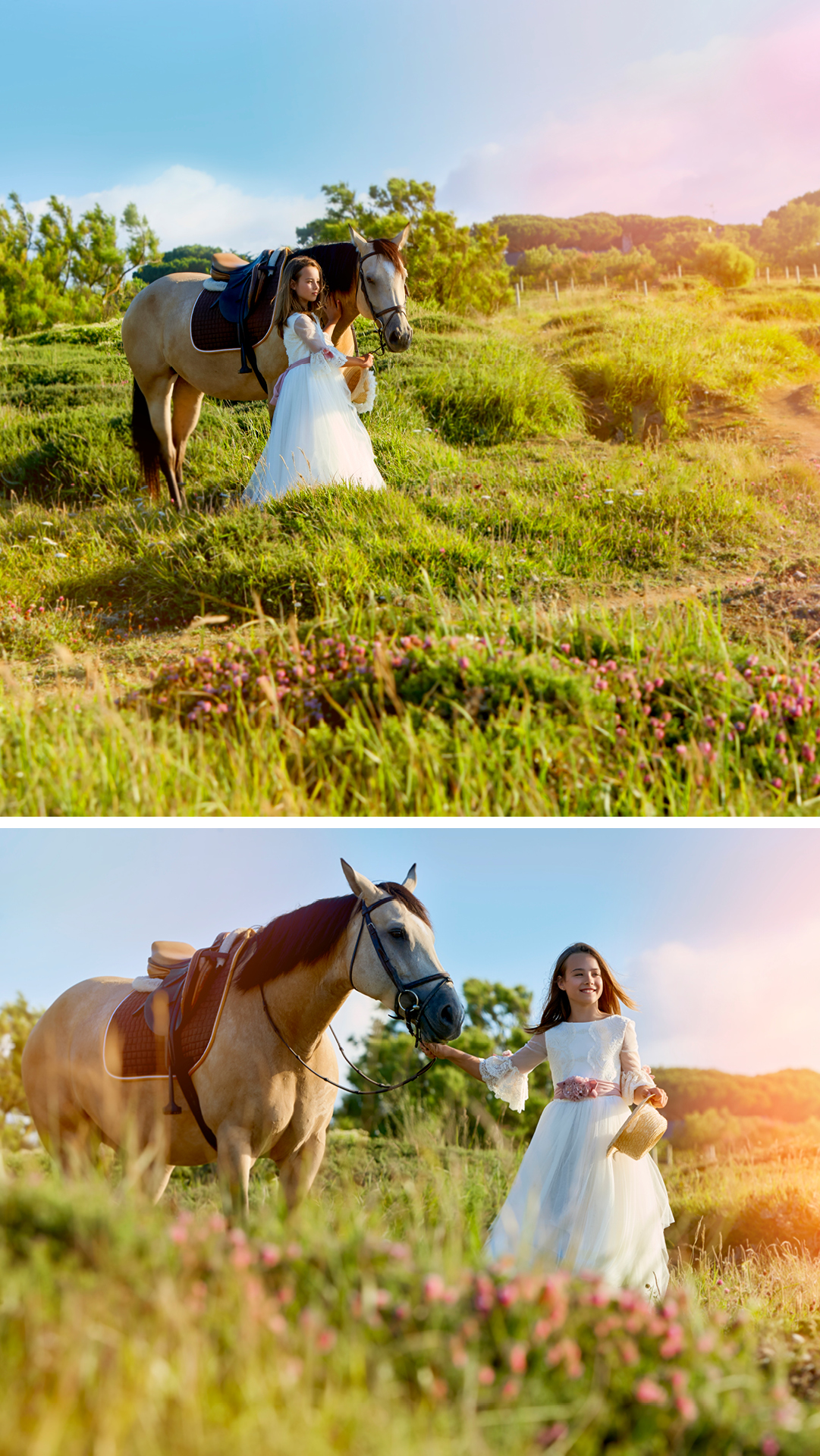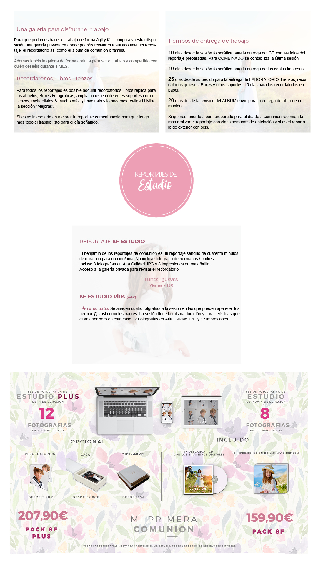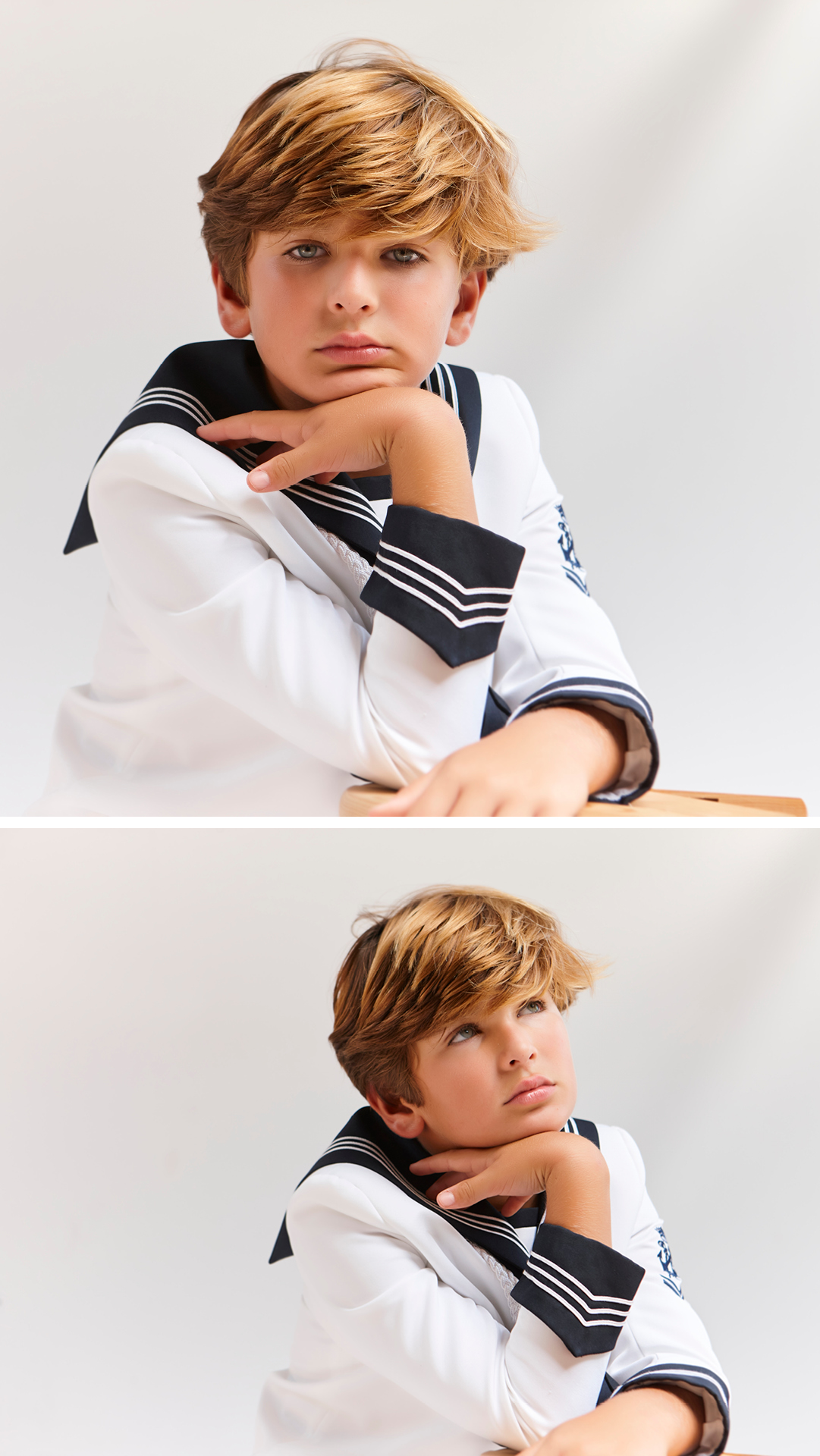 En los reportajes de comunión, mi objetivo es capturar la esencia de sus almitas . Me gusta que los niños sean ellos mismos, con decorados y complementos sencillos. Lo importante en mis fotografías son ellos, sus expresiones, sus risas, captar la esencia de cada niño; alegres, reservados, tímidos, dulces… etc ¡Son tan espontáneos y naturales que siempre salen imágenes únicas! En el estudio, también contamos con atrezzo divertido (sombreros, maletas, gafas…) que les encanta usar y que les ayudará a darle un toque único y muy divertido a sus fotos.